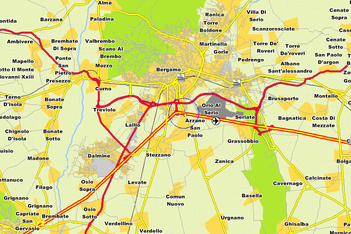 Dall'autostrada A4 uscita al casello di Bergamo, seguire per zona aereoporto;